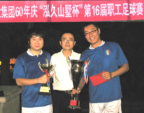 25日17時(shí),季軍爭(zhēng)奪戰(zhàn)在四分公司和六分公司之間展開,海川集團(tuán)吳鑫董事長(zhǎng)也親臨比賽現(xiàn)場(chǎng)為隊(duì)員們加油助威。在經(jīng)過50分鐘的激烈爭(zhēng)奪后,由于雙方都過于重視防守,比賽以0:0的比分戰(zhàn)平進(jìn)入點(diǎn)球賽,半決賽失手點(diǎn)球戰(zhàn)的六分公司隊(duì),這次顯示出了較好的腳法,以3:0戰(zhàn)勝四分公司隊(duì)獲得季軍。晚上18時(shí)許,總部足球隊(duì)與二分公司隊(duì)之間的決賽正式開始,比賽中雙方顯示出昂揚(yáng)的斗志,積極拼搶,嚴(yán)密防守,上半場(chǎng)雙方戰(zhàn)成平手,在下半場(chǎng)比賽中,趁著對(duì)手體力下降之機(jī),總部足球隊(duì)的李寧和尹熙文各抓住一次機(jī)會(huì)破門,最終以2:0獲得冠軍。