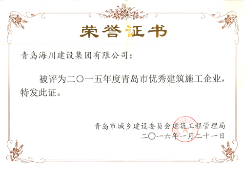 海川集團(tuán)被評為2015年度青島市優(yōu)秀建筑施工企業(yè)