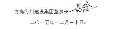 在2016年即將到來之際,我謹代表青島海川建設(shè)集團,向所有關(guān)心和支持我們企業(yè)發(fā)展的各級領(lǐng)導、各界朋友致以誠摯的新年祝賀!同時向一年來努力工作、忘我奉獻的全體股東和廣大員工致以新年祝福!向奮戰(zhàn)在海外和埠外項目上的全體員工及其家屬致以親切的問候和衷心地感謝!
