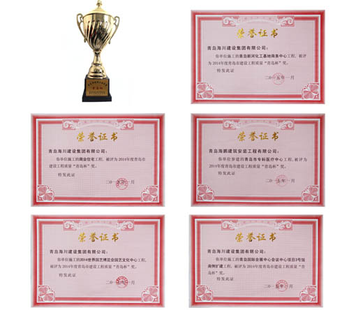 海川集團(tuán)所獲5項(xiàng)“青島杯”分別是:青島新河化工基地商務(wù)中心工程(一分公司施工);山東路商業(yè)住宅工程(一分公司施工);青島市專科醫(yī)療中心工程(三分公司施工);2014世界園藝博覽會(huì)愿意文化中心工程(四分公司施工);青島國際會(huì)展中心會(huì)議中心項(xiàng)目3號(hào)館南側(cè)擴(kuò)建工程(六分公司施工)。