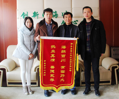 “我們代表青島市中心血站,向海川集團表示感謝,感謝你們對無償獻血工作的支持,感謝你們?yōu)槲沂袩o償獻血事業(yè)的健康發(fā)展作出的貢獻?!北驹?0日上午,市中心血站張燕華副主任一行,帶著繡有“海納百川,有容乃大;熱血真情,善德永存”的錦旗來到我集團,向在此次公益活動中踴躍參與、無償奉獻的企業(yè)職工表示誠摯的感謝。工會主席鄭守國代表集團接受了錦旗,并對中心血站在此次獻血活動中給予海川集團的高度重視和好評表示了感謝。